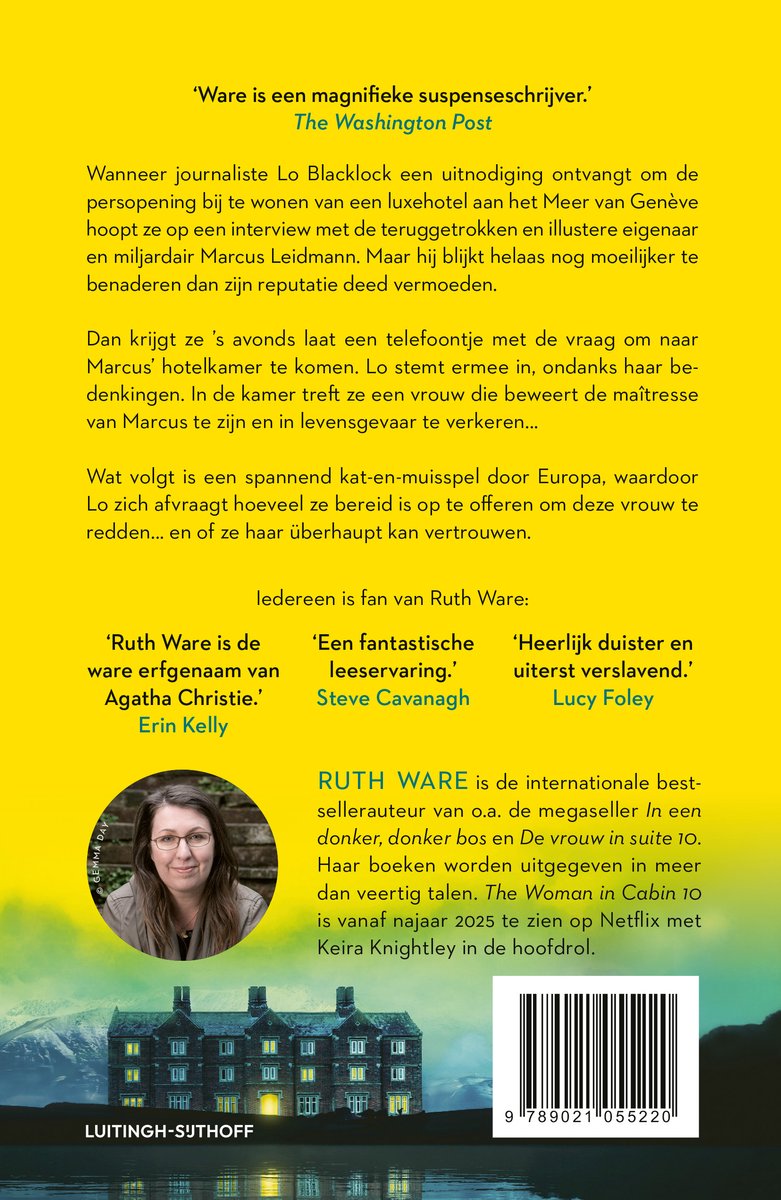 Wanneer journaliste Lo Blacklock een uitnodiging ontvangt om de persopening bij te wonen van een luxe hotel aan het Meer van Genève hoopt ze op een interview met de teruggetrokken en illustere eigenaar en miljardair Marcus Leidmann. Maar hij blijkt helaas nog moeilijker te benaderen dan zijn reputatie deed vermoeden.