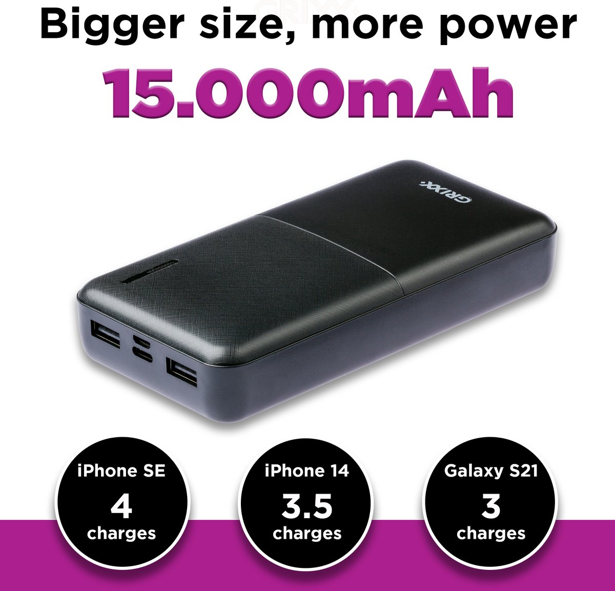 Ben jij zoekende naar een powerbank om bijvoorbeeld je iPhone of Samsung smartphone op te laden? Dan is het zeker slim om voor deze Grixx powerbank 15.000 mAh te gaan. Jij kunt hier namelijk gemakkelijk je smartphone mee opladen. Dit is dus perfect, zeker wanneer je even geen mogelijkheid hebt tot stroom. Met een Grixx powerbank van 15000 mAh hoef jij je geen zorgen meer te maken om een lege batterij.
