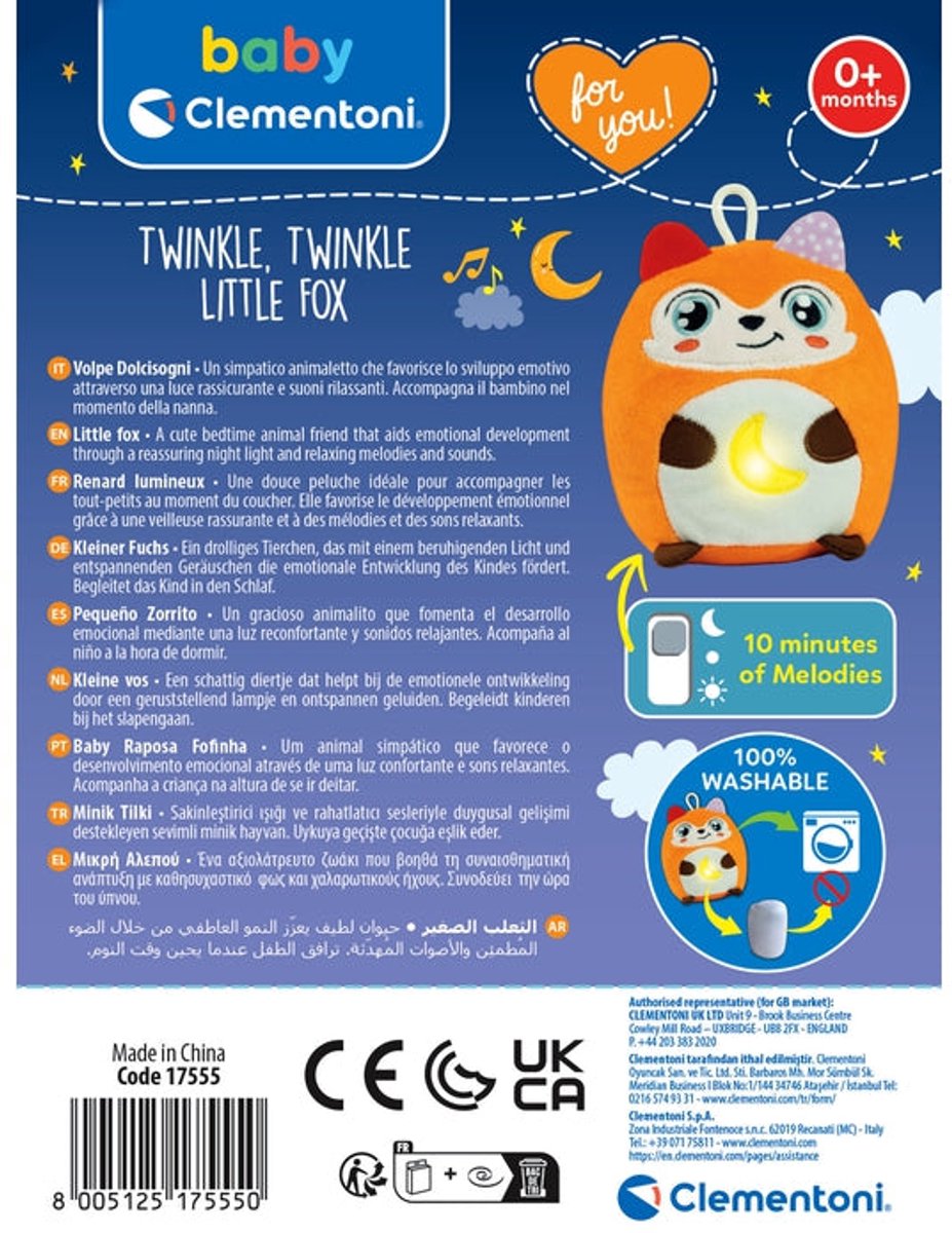 De personages uit de Twinkle Twinkle‑lijn geven zacht licht en spelen rustgevende melodieën en witte ruis af, speciaal bedoeld om het inslapen te bevorderen.